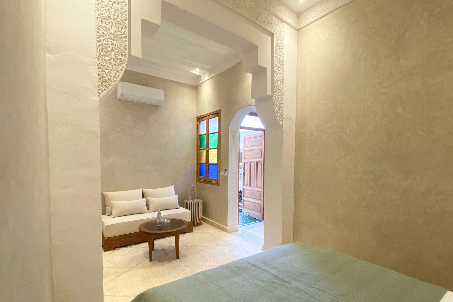 All guests enjoy daily breakfast, complimentary Moroccan mint tea and filtered water throughout the day, and access to the patio with the pool and the salon. Air conditioning, heating, and Wi-Fi are provided in each room and suite.
